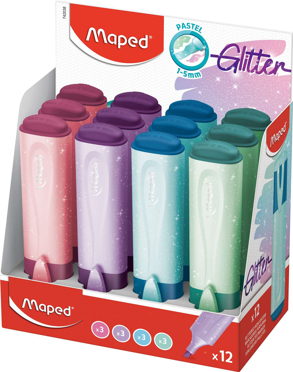 Fluo Peps Classic Pastel Glitter Highlighters Display x12, 144 packs