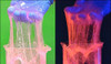 - Mixture is pink under regular light and glows orange under a black light.