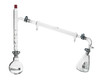 The Fractional Distillation Assembly is a high-quality distilling kit made of borosilicate glass. It is typically used to separate a mixture into individual parts or fractions by heating it. The kit consists of only glassware for distilling experiments. No tubing, heat source, or stands are included. All joint sizes are 19/26.