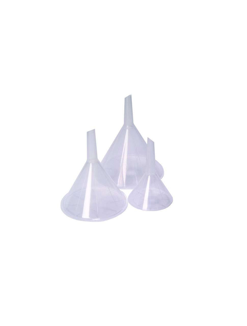 - Pack of 12 polypropylene funnels with 40ml capacity