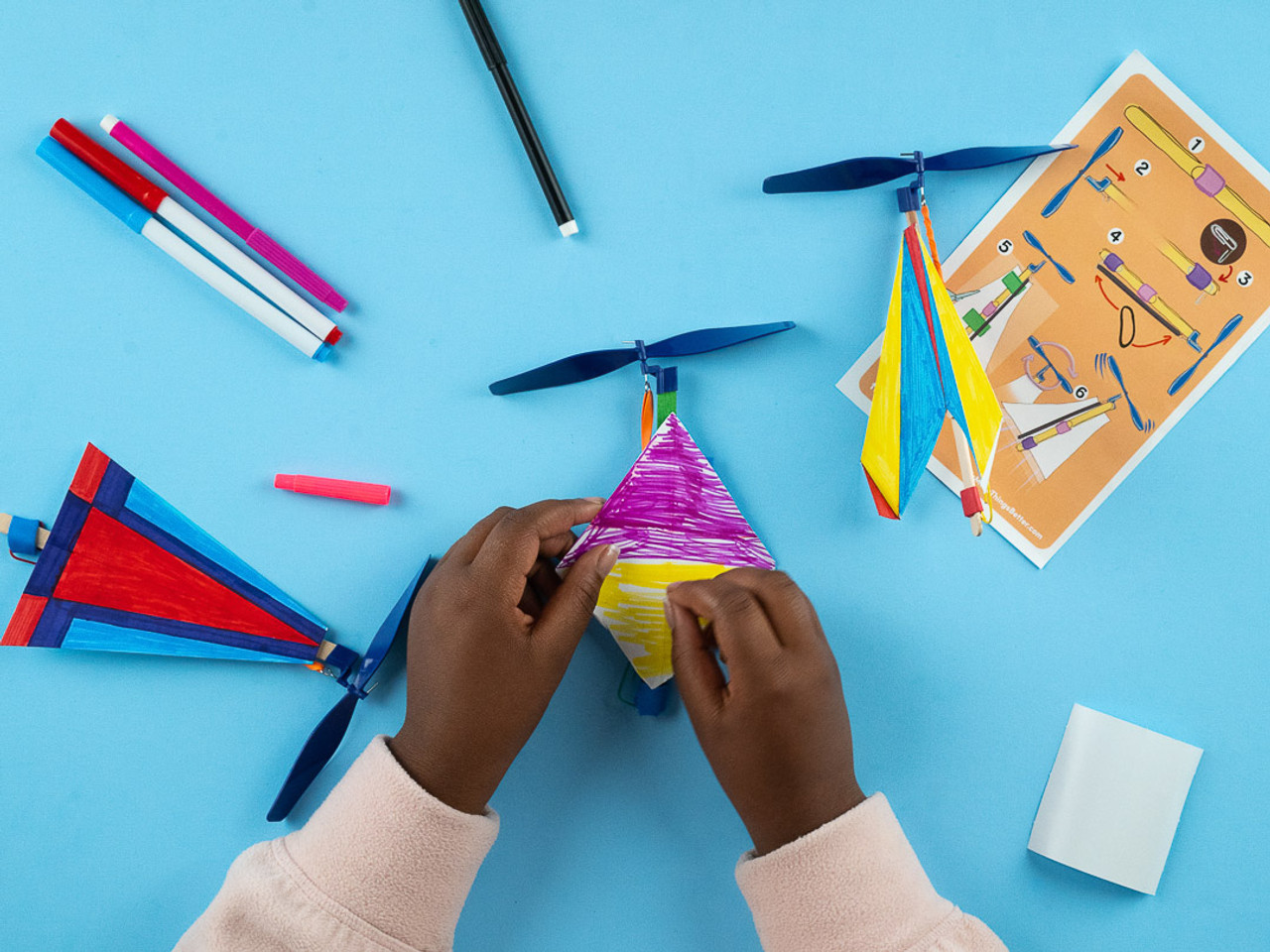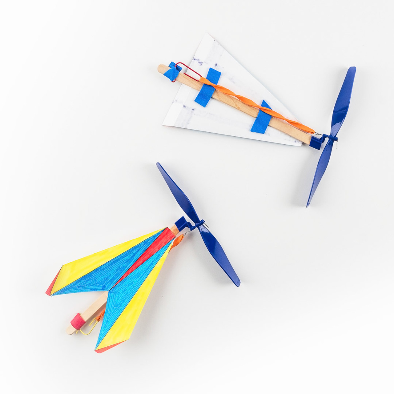 Invent a wind-up flying machine that explores the transfer of potential to kinetic energy. Design and attach the fuselage, wind it up and launch! Promote resilience and iterative thinking by adjusting designs for successful flights.