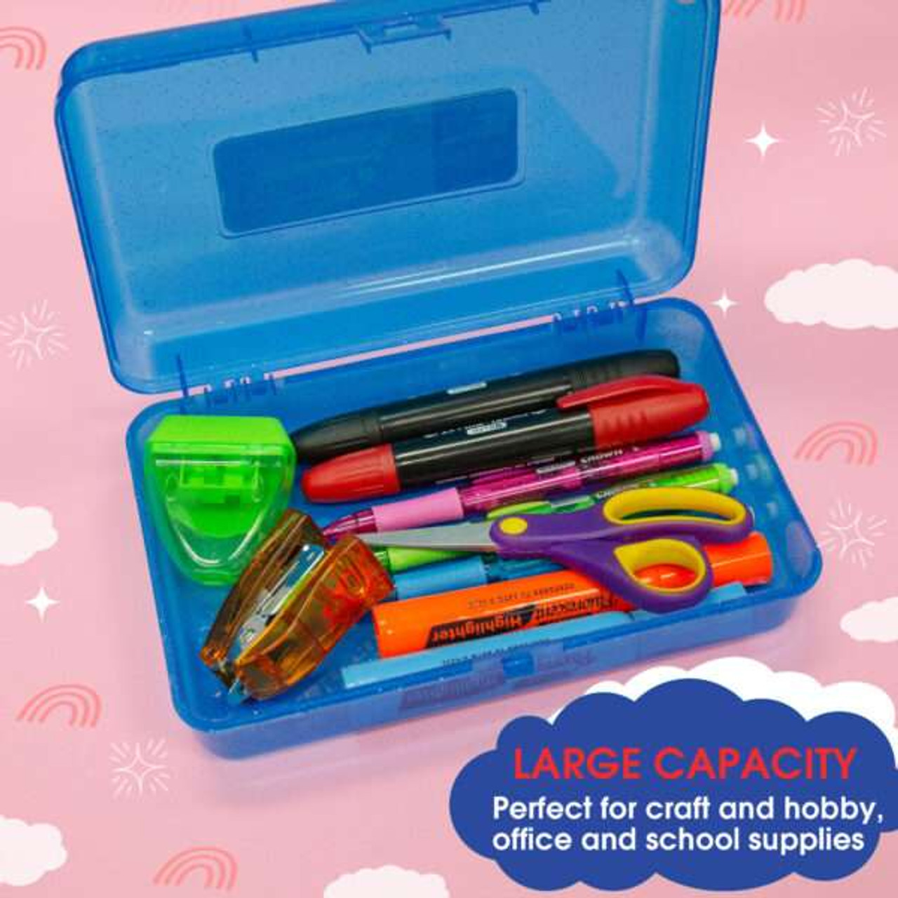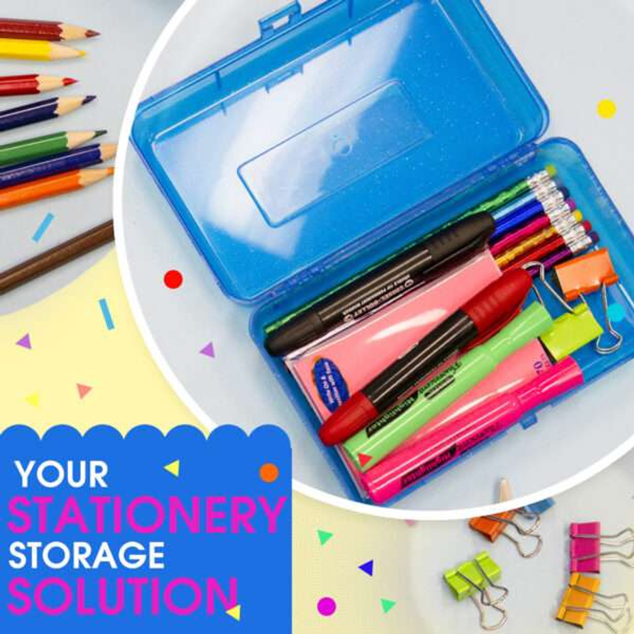 - BRILLIANT DESIGN. Assorted Colors. Clear and transparent design keeps contents visible. Allows you to see through the box to easily locate items. Available in bulk school supplies to save your costs.