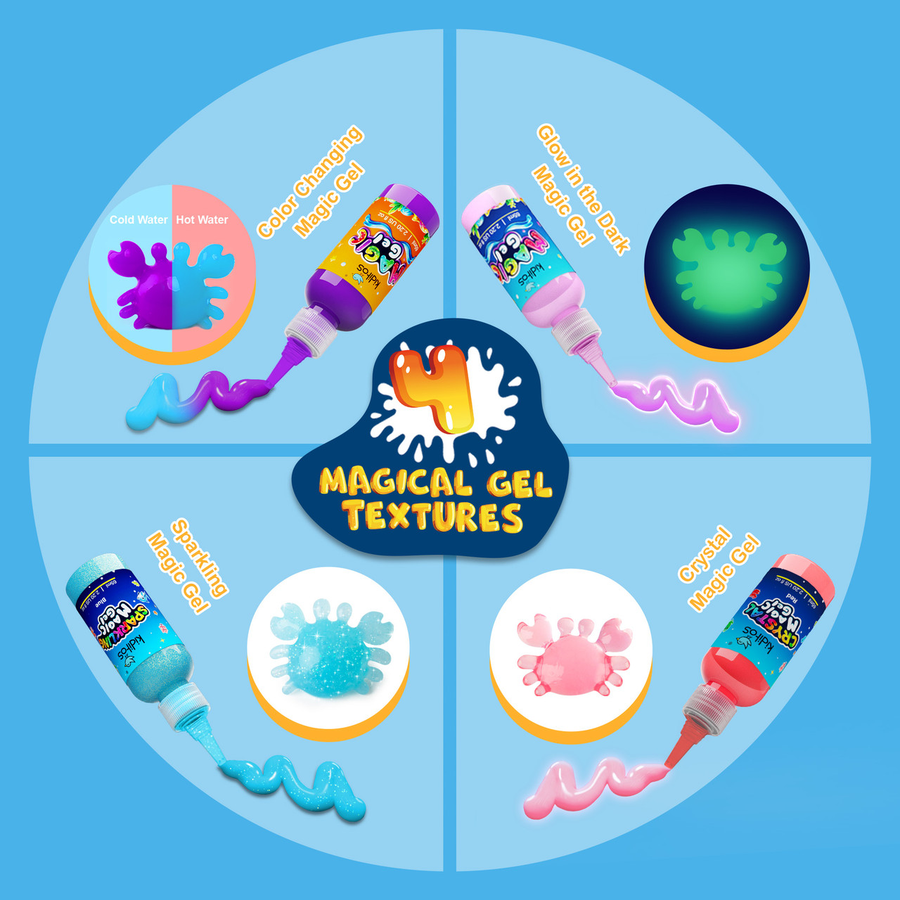 - 30 glitter-infused Magic Gels for creative, sensory fun.