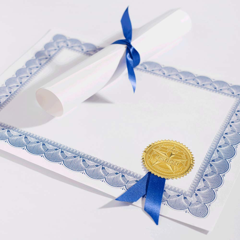 Achievement Award Gold Foil Embossed Certificate Seals are gold foil embossed certificate seals add an extra touch of class to any certificate, award or diploma! Embossed with Achievement Award surrounded by decorative triangles for that special day. Also great for prizes and bulletin boards.