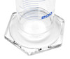 2000ml graduated measuring cylinder made of high-quality, heavy-duty Borosilicate 3.3 glass. Spout for easy pouring, and hexagonal base for extra stability. Class A tolerance, ±10.0ml as per DIN EN ISO 4788 standard. Blue printed graduations and specifications. 20ml subdivisions. The cylinder stands 22.25" tall, with a base measuring 5.8" wide. The inner diameter of the cylinder body measures 79mm (3.1"), and the outer diameter measures 83mm (3.25").