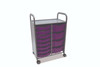 Gratnells Callero Double Metal Cart, 8 F1 Shallow & 4 F2 Deep Plum Purple Trays, Feet or Casters, Ideal for School Activity and Business Use