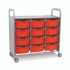 Gratnells Callero Triple School Activity Cart, Silver, 12 Deep Tropical Orange F2 Trays, Rolling Storage Education & Business Organizer, Casters