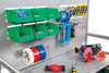 a wide variety of materials. Mix and match tray sizes to meet your changing needs. Move trays between fixed storage, classroom furniture, and MakerSpace cart. Move trays between fixed storage, classroom furniture, and MakerSpace cart. Many tray inserts available to sort and segment different components. Wide range of tray colors to allow color coding of parts. Sliding trays, on Stop Safe runners, allow easy access to components. Tool hangers can be moved and changed to suit many objects. Ergonomic loop handles for easy movement. Dimensions (inches): 40 (W) x 17 (D) x 62 (H)