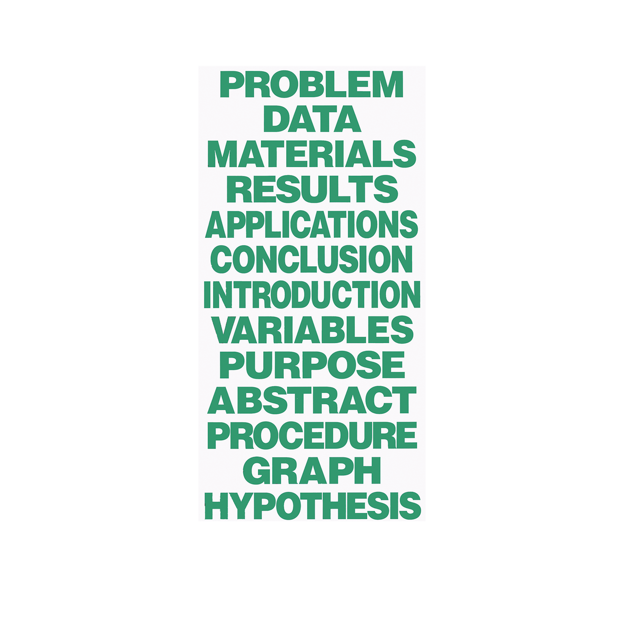- Most Common Science Terms - Problem, Data, Materials, Results, Applications, Conclusion, Intorduction, Variables, Purpose, Abstract, Procedure, Graph, Hypothesis