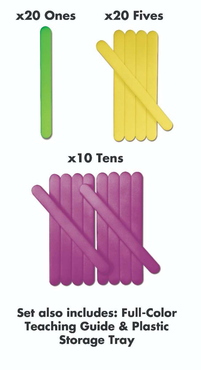 Includes: Molded Plastic Tally Marks 120 each Tens, 240 each Fives, 240 each Ones, & teacher's guide