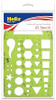 General Purpose Drawing Template is perfect for technical drawing, drafting, geometry class, general drawing and more! 41 total shapes are stamped into the template body including equilateral triangles, hexagons, squares, circles, arrows, a star and a 180° protractor. All cutouts feature centering line and are designed with a 0.5mm pencil allowance to guarantee shape size. Durable, translucent & flexible plastic template feature ink risers on reverse side to prevent smudging. Dimensions: 5 1/2‘‘ x 9 1/2‘‘