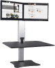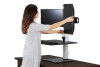 Transform any sit-down desk into a standing desk with our DC450 model. Easily adjustable to your preferred height, this best-selling model ensures the correct ergonomic placement of monitors, keyboard, mouse, and other accessories for optimal comfort. Sleek wood and sturdy aluminum construction with a durable lamenant coating provide years of use. And a padded steel base protects your work surface from scratches. Standard VESA mounting holes are required to attach monitors.