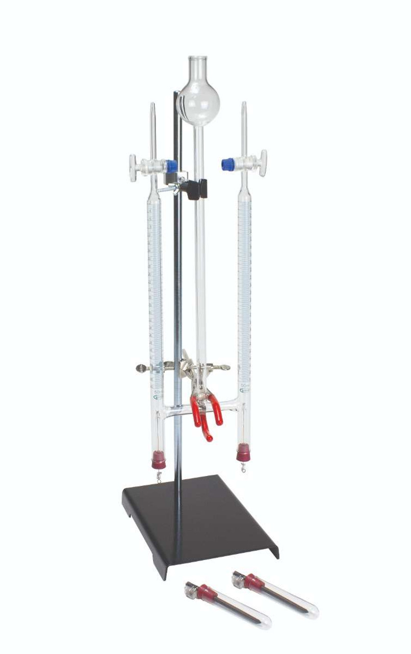 SKU: 212840- Hoffman Electrolysis Apparatus is used for the qualitative and quantitative study of the electrolytic decomposition of electrolytes such as water and hydrochloric acid.