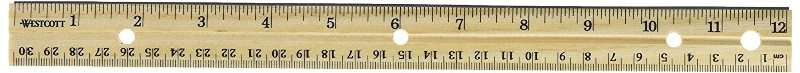 12/30 cm English/Metric Wood Ruler made from selected hardwood with a multiple-coat clear lacquear finish. Scaled in 16ths and in metric on same side. Sturdy metal edge, hole punched. Perfect tool for every student in the classroom!Â