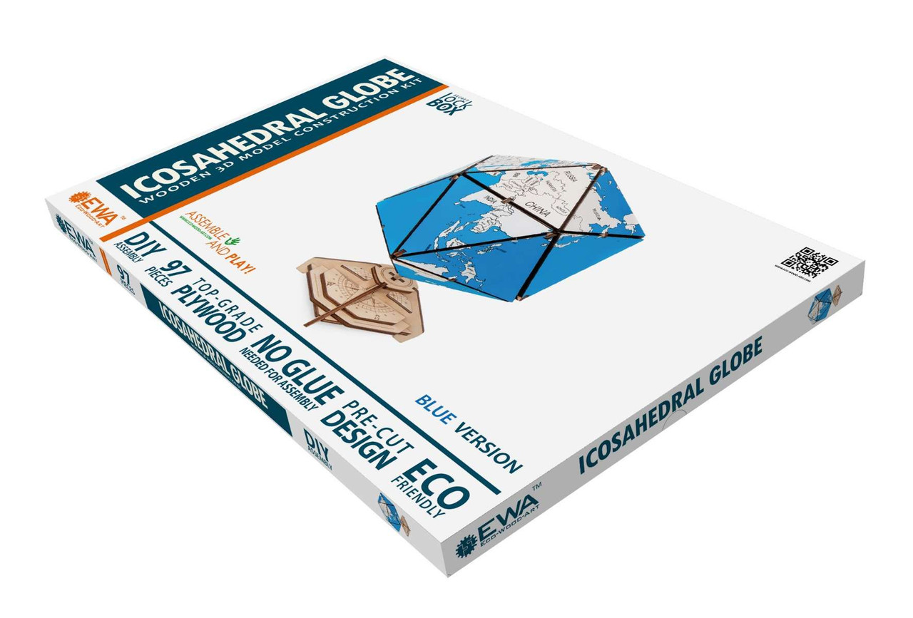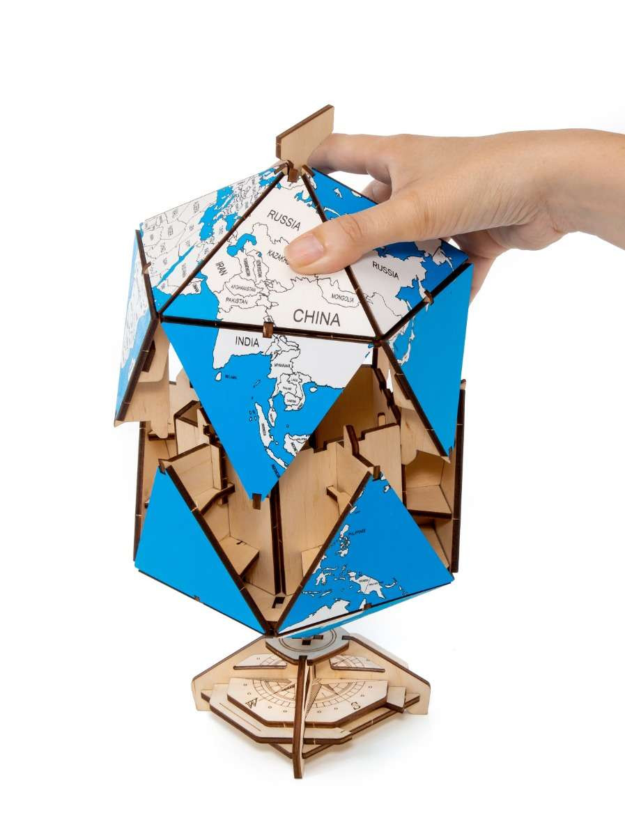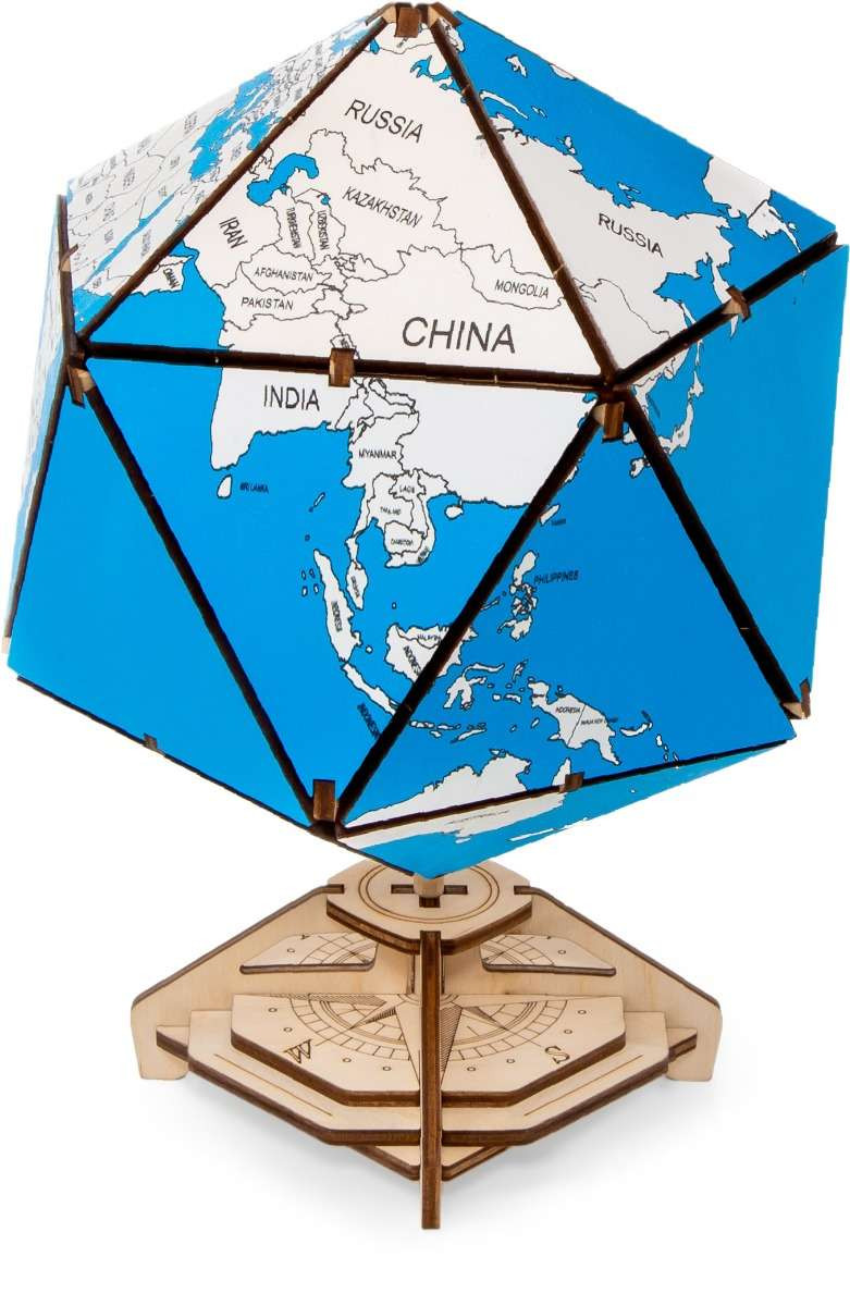 This beautiful globe of icosahedral shape (20 faces) is a fun construction kit to assemble.
