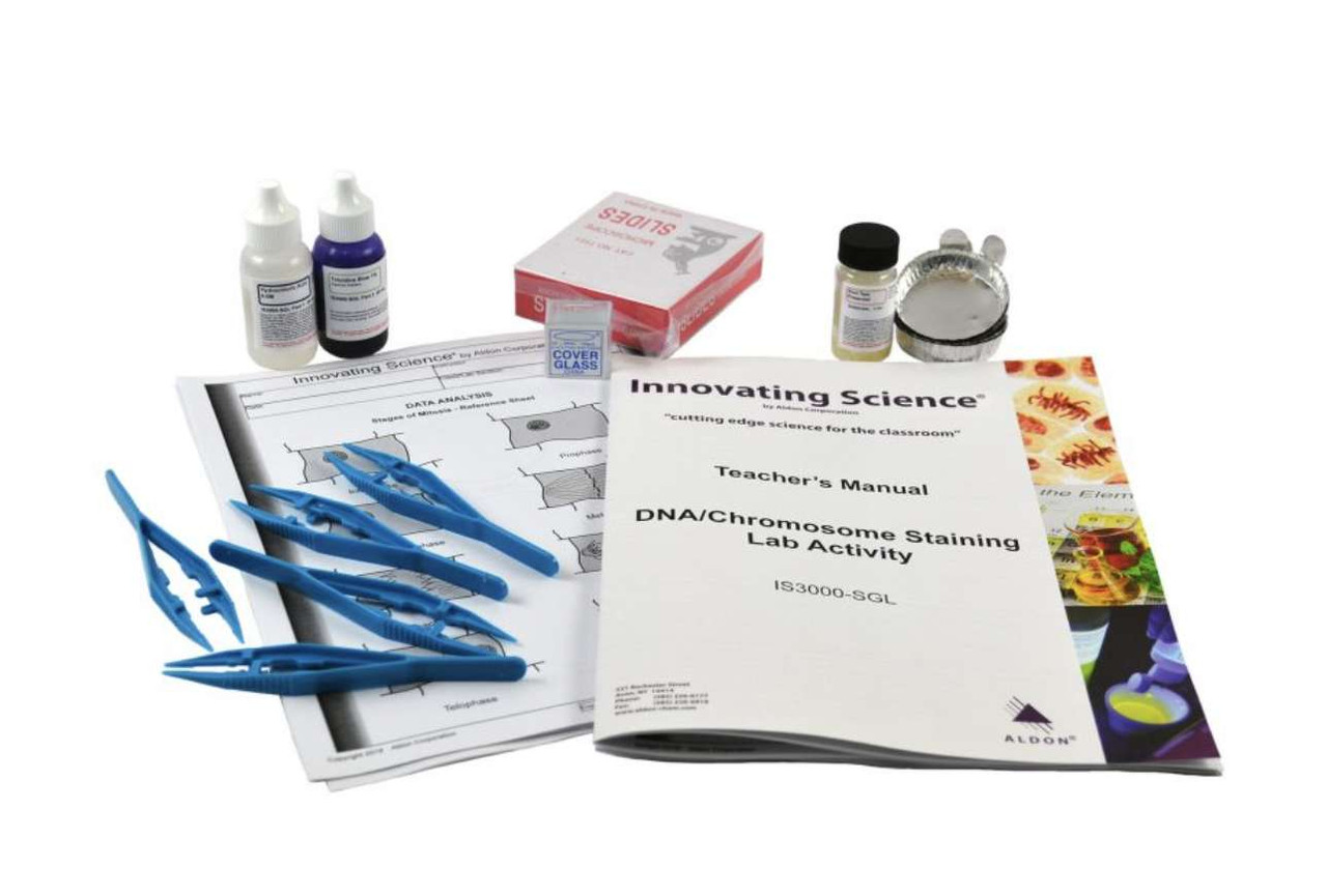 Prepare your own squashed stained slide and be able to identify the phases of plant mitosis and chromosomal development. Students will be able to prepare, stain and mount slides using specially prepared onion root tips. Kit contains enough material for 5 groups. Teacher's Manual and Student Study Guide copymasters are included.
