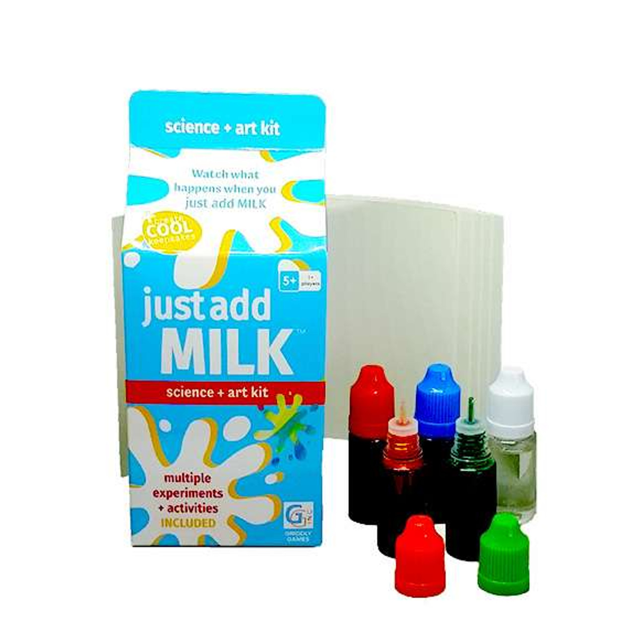 Designed for kids aged 5 and up, Just Add Milk sparks curiosity and fosters a love for both science and art. Packaged in a convenient milk caddy display, it's a delightful addition to any home or classroom.