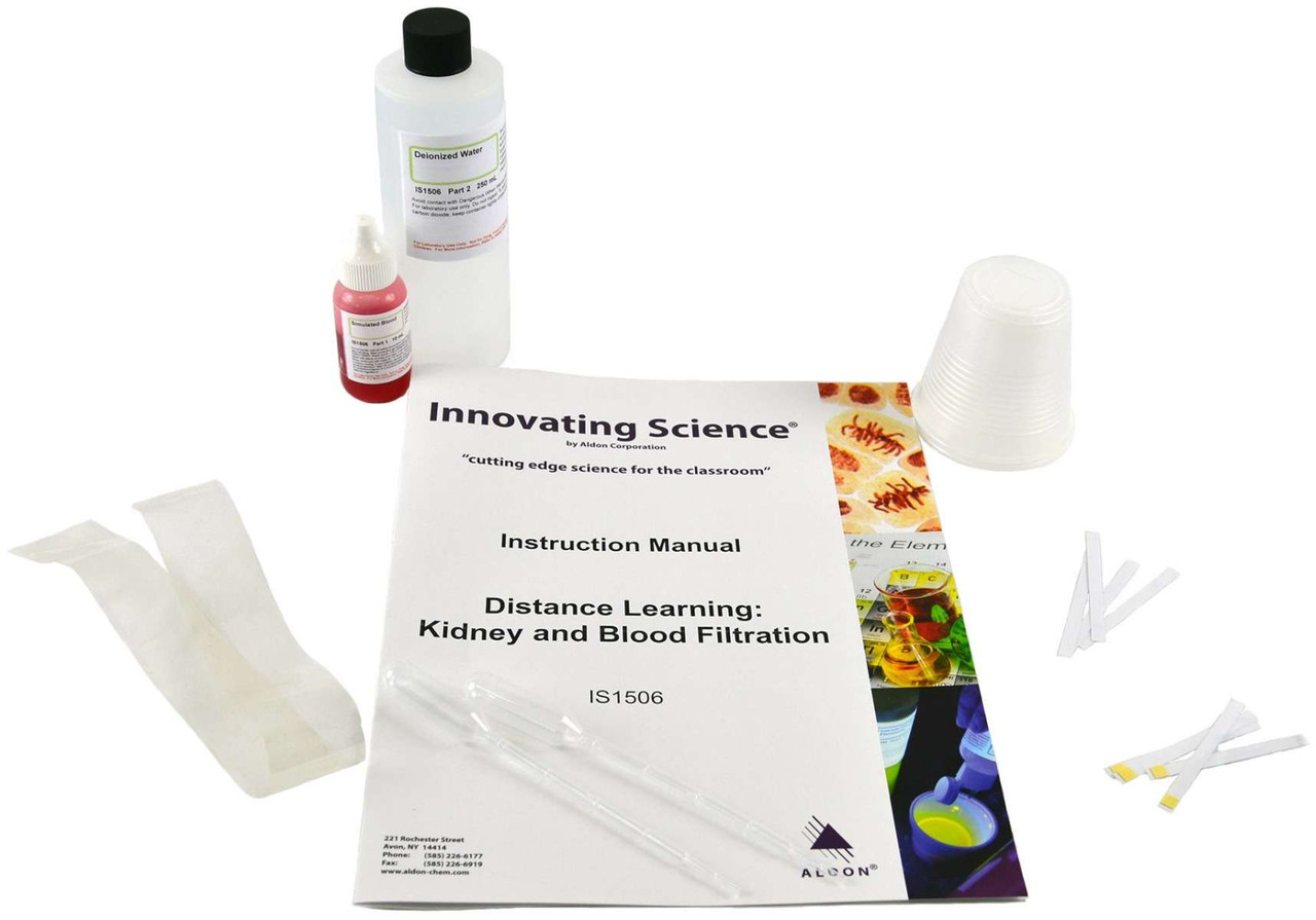 Learn the role of the kidney in blood filtration and waste removal along with the many tasks performed by the functional units of the kidney, called nephrons, as well as nephron structure. Students will create an artificial kidney model to filter a simulated blood solution, and will be able to visually determine if filtration of the simulated blood occurred. They will also perform chemical tests on the resulting filtrate to detect any possible waste material that may have been removed by the artificial kidney. Kit contains an Instruction Manual and enough materials for 2 groups.