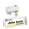 Add a touch of detail to any event or gathering that you are planning. Use the name tent card and holder to personalize a meeting or conference in minutes. Reusable heavyweight plastic tent holder to display name or sign prominently. Create name tents and signs with your inkjet or laser printer. Finished size 4 1/4 x 11. Great for offices, conferences, meetings, and more. Sits on a desk, table, or any flat surface. Scored card stock for easy folding sold separately. 25/BX