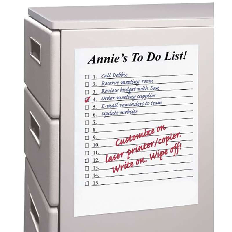 Laser Printer/ Copier Dry Erase Sheets are a great additon to any space! These are great for classrooms, homes and offices. With these sheets you can create custom dry erase calendar, schedule charts, graphic organizers and more with these low-tac, printable sheets. Peel off backing allows you to post the sheet exactly where you need it. Removable and repositionable. 8.5" x 11". Set of 25 sheets.