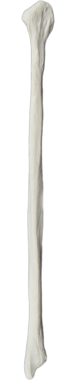 The life-size model of the left side human fibula bone provides an incredible amount of realism and detail for examining the human skeleton. Each model features realistic textures and bony landmarks, making it an excellent tool for educational study, as well as for patient demonstrations. Can be used for individual study or as replacement for missing or damaged pieces to a full skeletal model set. Made of durable, sturdy and washable PVC plastic, these model bones will withstand long time use and handling. This bone model measures approximately 13.5" long and 1" wide.