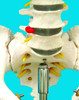 - Spinal column shows the spinal cord, nerve exits, vertebral arteries, and a herniated disk.
