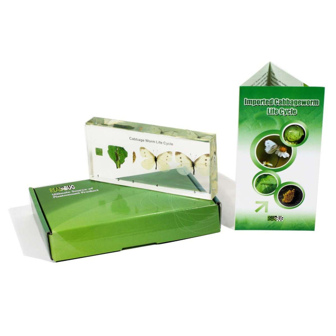 This block looks at the Life Cycle of the Imported Cabbageworm. The Cabbageworm undergoes complete metamorphosis. There is one specimen block included (6 1/2 x 3 x 1 in). Specimens are preserved and encased in clear resin material. They can be observed from every side to see details. Specimens include the different stages of the Imported Cabbageworm (Pieris rapae). Teacher information guide, fact sheet, student activity sheet, and answer key are included. Size of product is 8 1/4 x 4 3/4 x 1 1/2 in.