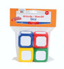 Product/Package Contents Include: Set of 4; one each of red, yellow, green, and blue small dice. Each small die measures 2”
