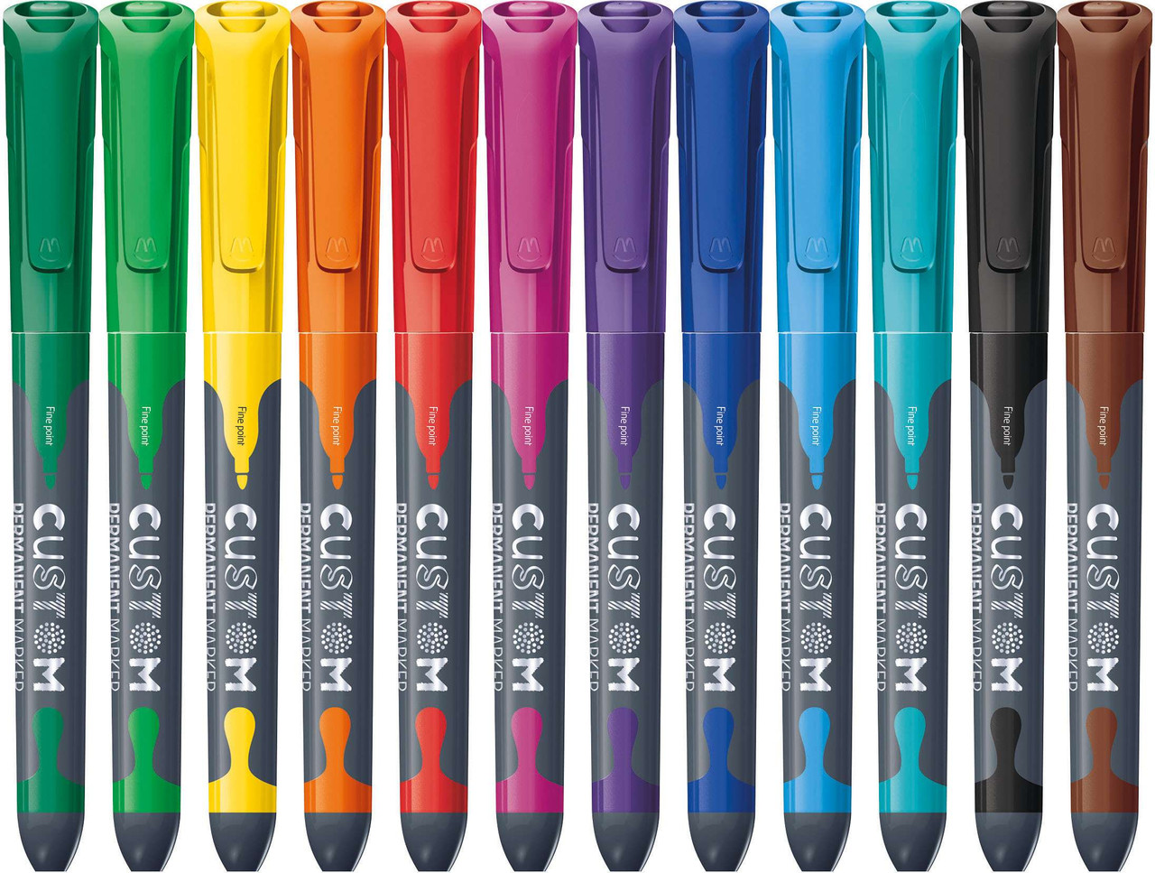 Maped Marker'Peps Permanent Fine Tip Markers are a new range of fine tipped multi-surface markers perfect for drawing, crafting, school, home, the office and more! Super vibrant inks let your artworks and notes stand out, and is designed to last up to 20 days without drying out if the cap is left off! Markers feature low odors to avoid any concerns about headaches, and the ink dries quickly and will not bleed through paper! Classic 1mm bullet tip is great for all uses, and the pen-style body is easy to hold and use. 12 pack includes fun, eye-catching colors and comes packed in a reusable carrying case!