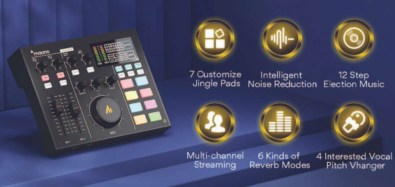 This Portable Podcast Mixer Production System is ideal for guitar, live streaming, podcasting, recording, chatting, broadcasting, and gaming, and is compatible with PC, Mac, and smartphones. All of these great features make this mixer system ideal for almost any user, at any age. Features 7 customizable jingle pads, noise reduction, multi-channel streaming, 6 reverb modes, 4 preloaded audio effects, and more! Fully control your recorded podcasts for professional results!