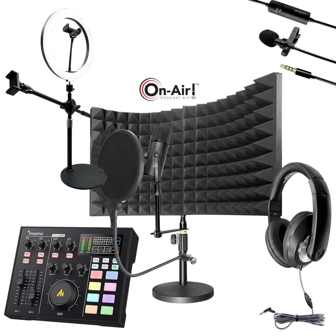- Includes On-Air Podcast Kit, Portable Podcast Mixer Production System, Backlight and Lavalier Microphone Set, and Smart-Trek Deluxe Headphones