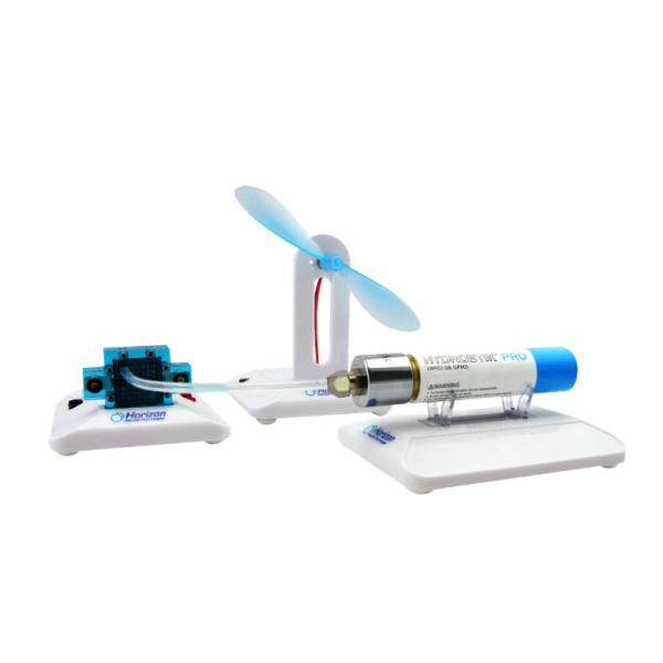 Explore the future of energy storage with Horizon’s Micro Fuel Cell Kit. Power a mini turbine by converting solid state hydrogen in the HYDROSTIK PRO metal hydride cartridge into electrical energy via a Horizon PEM fuel cell. Kids can see the effect as the hydride slowly cools and releases hydrogen into the fuel cell. The process is a model for all micro fuel cell systems— a working example of solid hydrogen storage that can lead to many interesting and creative application ideas.