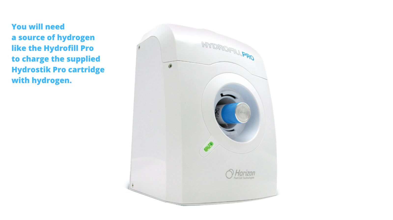 You will need a source of hydrogen like the Hydrofill PRO to charge the supplied Hydrostik PRO cartridge with hydrogen.