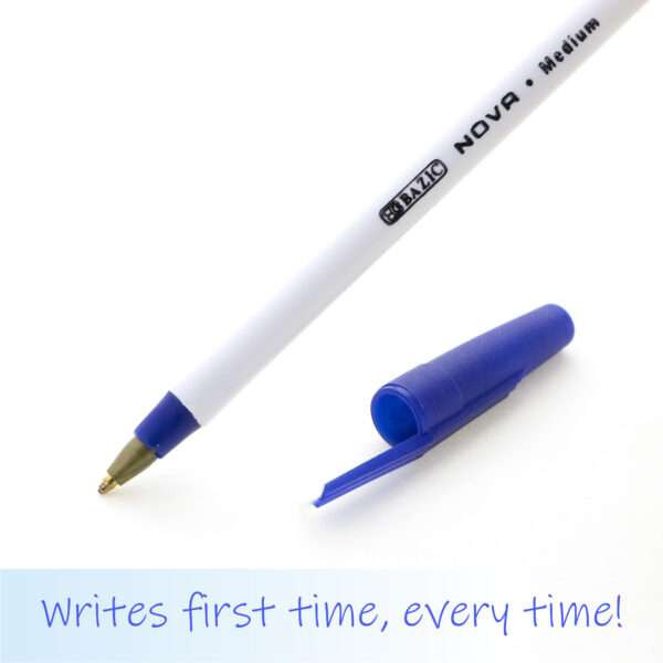 - NOVA BLUE COLOR STICK PEN. Each pack includes 12-Nova Blue Stick Pens. The medium ball point spreads ink evenly as you write, offering dependable performance for everyday use.