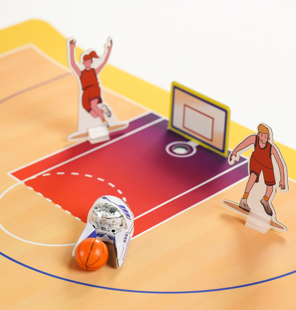Take your coding skills to the court with the Challenge Mat: Basketball! This exciting STEM activity lets students guide Evo through an All-Star Basketball Showcase. Designed to blend coding with sports, the mat challenges young learners to complete basketball drills such as passing, dribbling, shooting, and navigating around defenders. Each activity is carefully crafted to encourage critical thinking, teamwork, and problem-solving as students code Evo to perform a variety of basketball moves with precision.