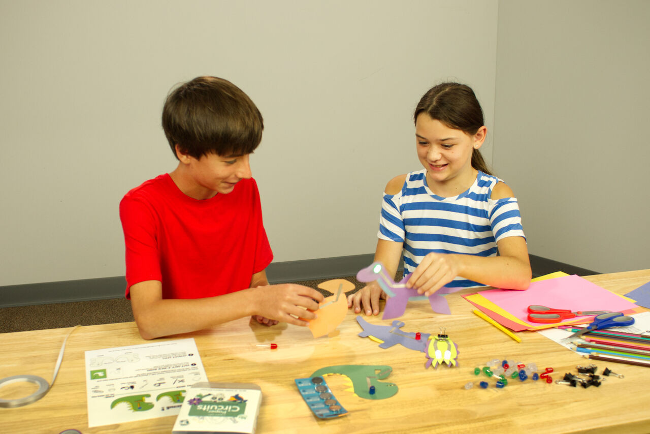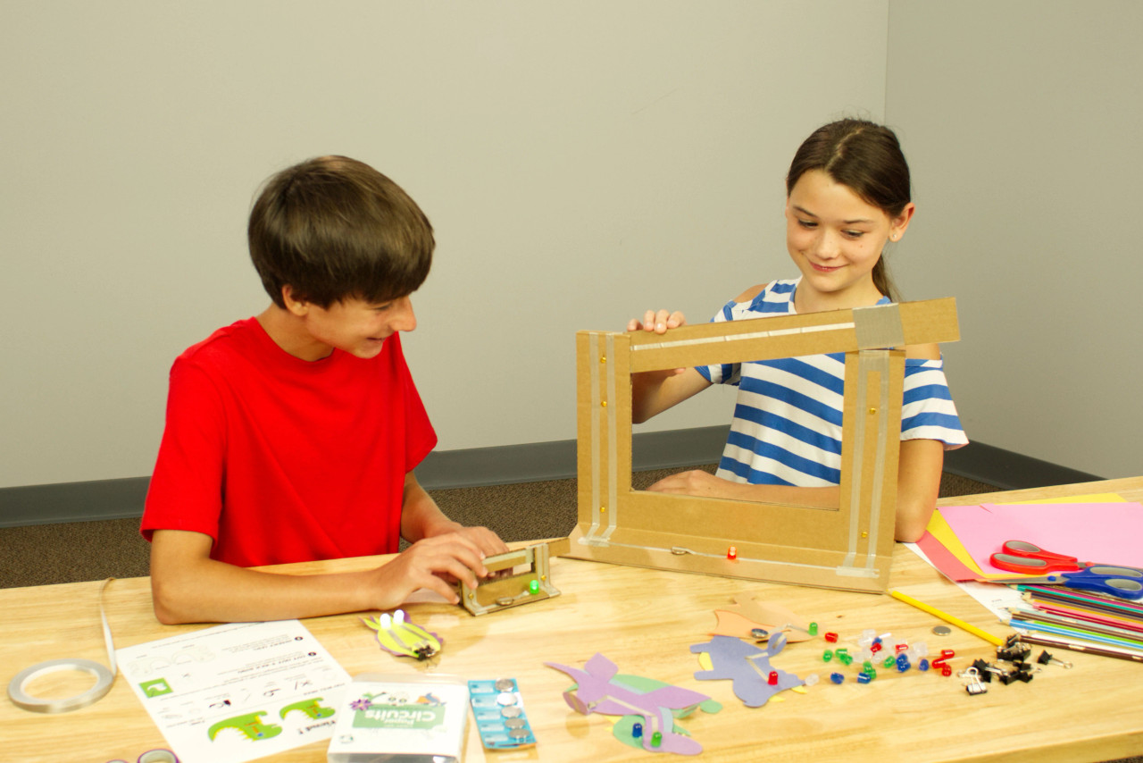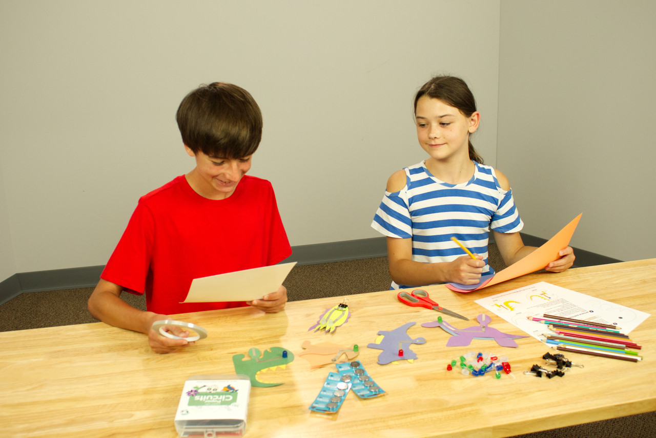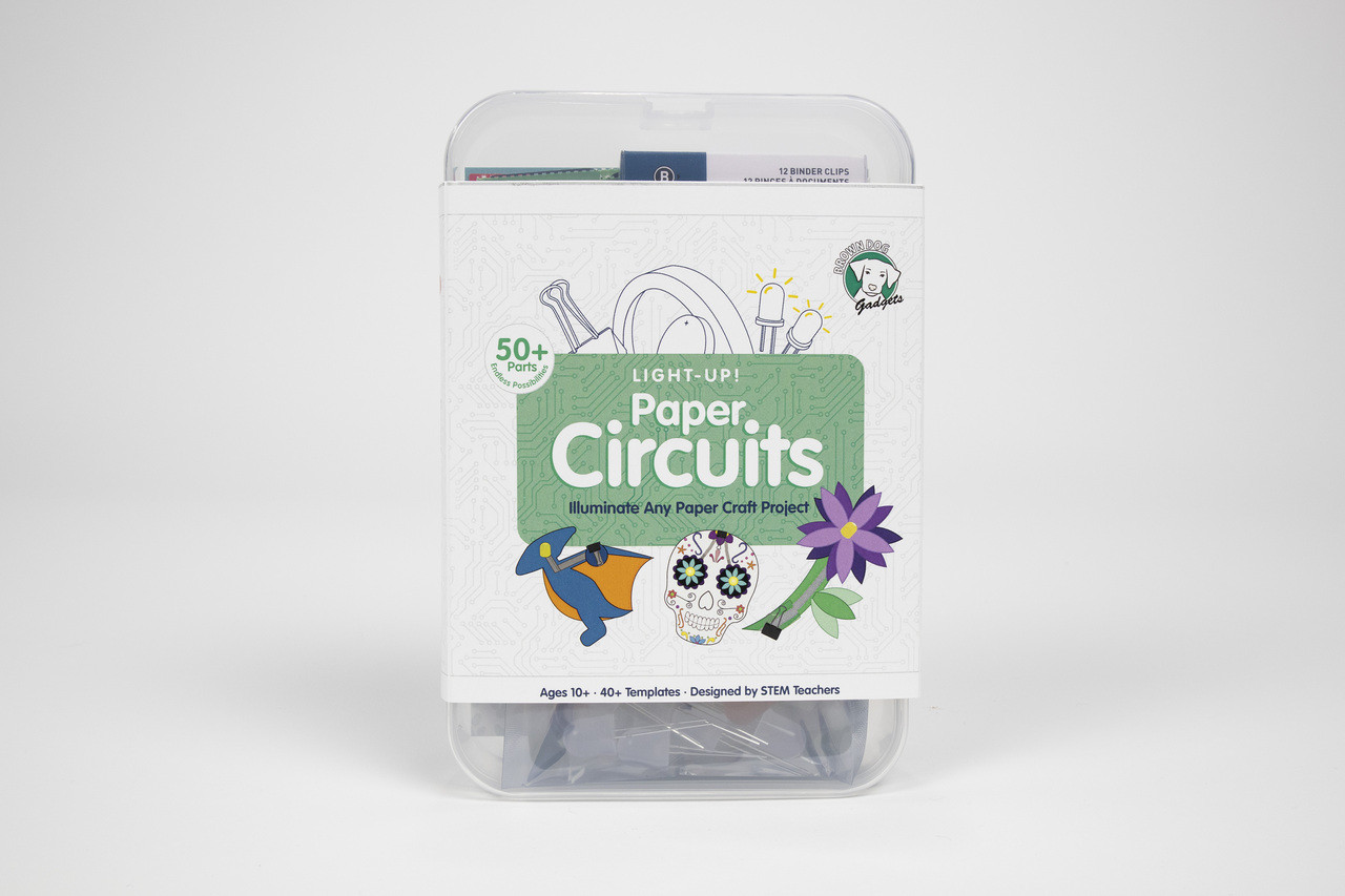 Designed from the ground up to be engaging for kids of all ages, our kit fits right at home at a kitchen table, workshop, or classroom. Create your own projects from scratch or use one of our many free Paper Circuits project guides or our themed eBooks. Teach the basics of electronics by using our online lessons and simple curriculum, complete with student and teacher documentation.