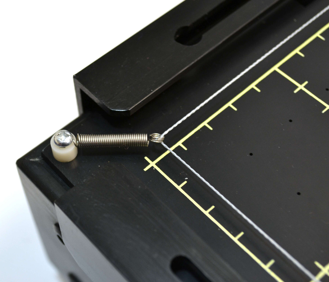 • Air table has preinstalled flexible cable bumpers for doing movement, launches, collisions, and a variety of other physics experiments, rails above bumpers except rail pins for designing custom experiments