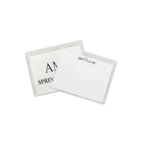 Pin Style Name Badges, Kit with Inserts, Clear, 3 1/2 x 2 1/4, 100/BX
