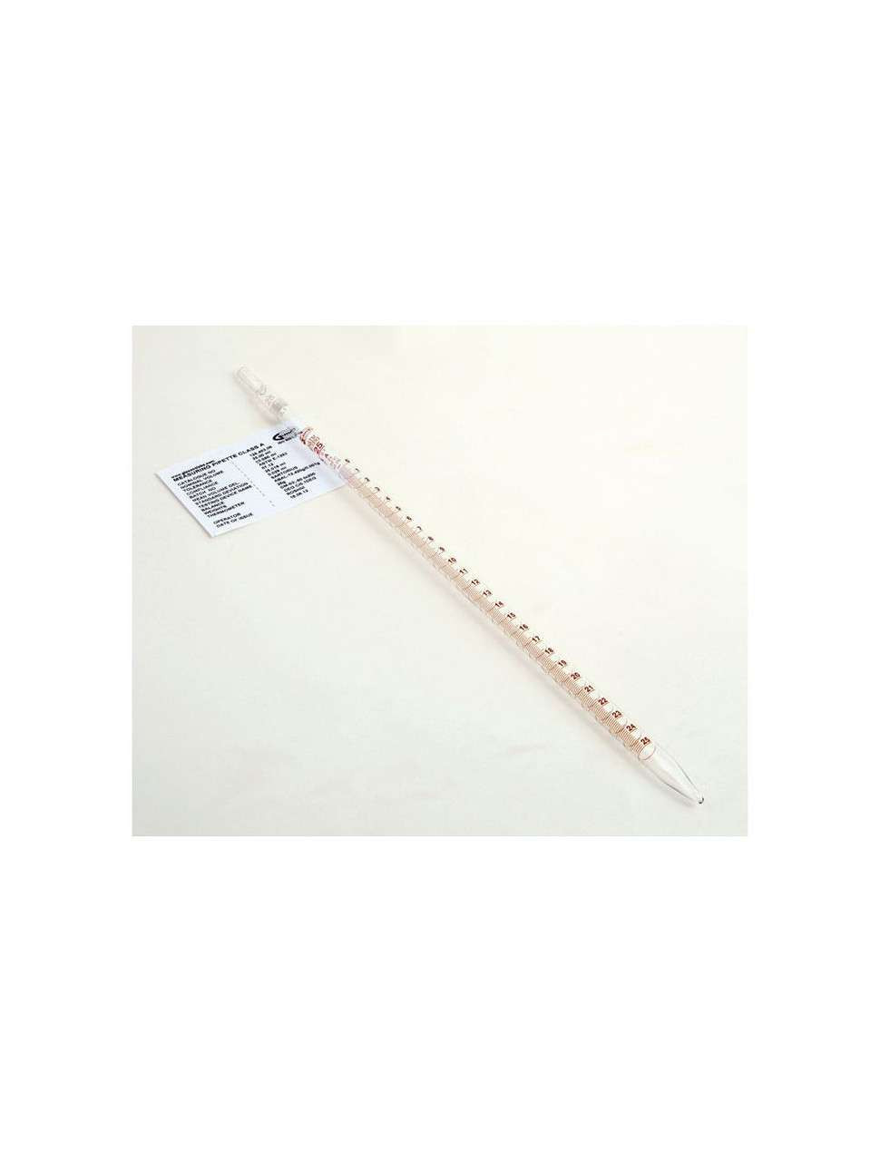 Pack of five Type 3 serological pipettes with 1ml capacity, color-coded in red. Made from borosilicate glass in compliance with USP, Class A standards. Batch certified and calibrated to deliver. Printed with durable amber markings.