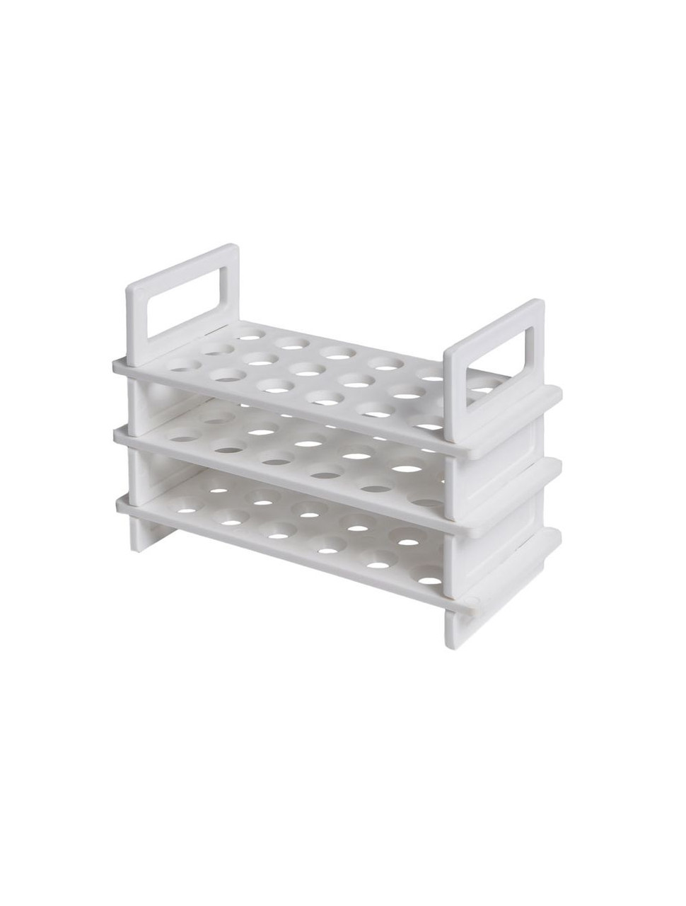 Polypropylene racks with a 3-tier design provide a clear view of the tube contents and convenient insertion and removal of tubes.