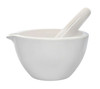 Single Mortar and Pestle set with a 30oz (900ml) capacity. Perfect for grinding and crushing powders, pills, pigments, and more. Designed for use in professional laboratories but makes an excellent addition to any kitchen. Mortar and pestle are both made of solid porcelain. Resistant to chips and cracks. The inside grinding surface of the mortar and the rounded end of the pestle are unglazed for precise grinding and crushing. Mortar features a contoured spout for pouring and transferring crushed material.