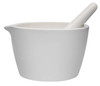 Single, heavy-duty Mortar and Pestle set with a 64oz (1900ml) capacity. Perfect for grinding and crushing powders, pills, pigments, and more. High walls prevent material from spilling out while being crushed. Mortar and pestle are both made of solid porcelain. Resistant to chips and cracks. The inside grinding surface of the mortar and the rounded end of the pestle are unglazed for precise grinding and crushing. Mortar features a contoured spout for pouring and transferring crushed material.