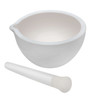 • Mortar and pestle are both made of solid porcelain. Resistant to chips and cracks. The inside grinding surface of the mortar and the rounded end of the pestle are unglazed for precise grinding and crushing.