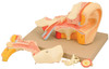 - Model has removable parts: petros portion of the temoral bone section of the auditory canal, labyrinth, tympanic membrane with malleus, and incus.