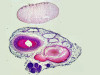Study the intricate anatomy of blood vessels and nerves with this detailed cross-sectional slide featuring an artery, vein, and nerve from a mammalian specimen. This slide provides a clear comparison of these vital structures, showcasing their distinct histological features and functions. Ideal for educational settings and research, this slide enhances understanding of vascular and neural anatomy.
