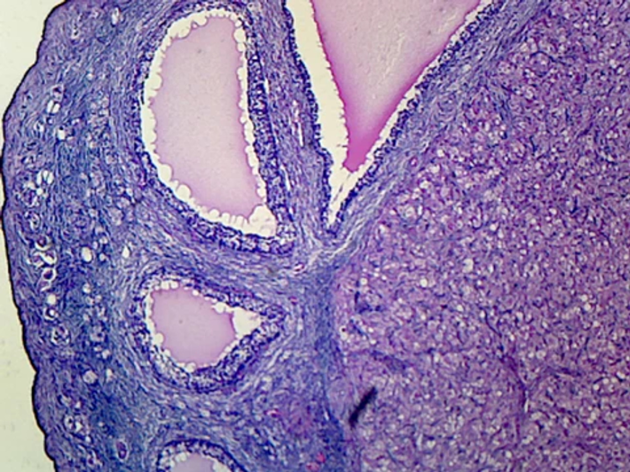 Explore the structure and function of the corpus luteum with this detailed histological slide of a mammalian specimen. This slide provides a clear view of the corpus luteum, an essential part of the reproductive system involved in hormone production during the menstrual cycle. Ideal for educational settings and research, this slide offers valuable insights into reproductive physiology and endocrine function.