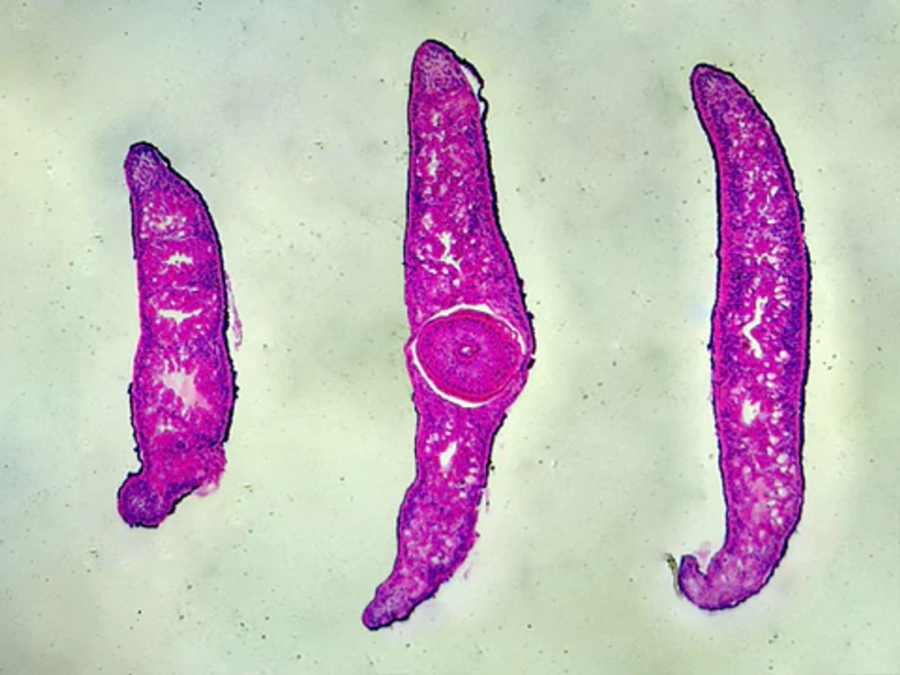 Prepared Microscope Slide, Planaria, Three Different Regions: Showing Anterior, Middle, and Posterior Region; Cross Section