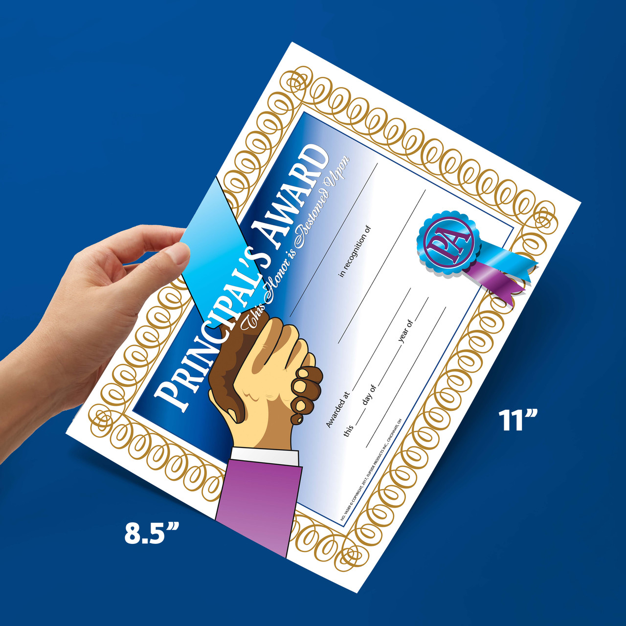 Principal's Award Certificate is given out to a select group of students that have achieved certain qualifications. These Hayes certificates can be given out at end of the year parties or award ceremonies. Downloadable template is available. Available in a pack of 30 and measures 8.5" x 11".