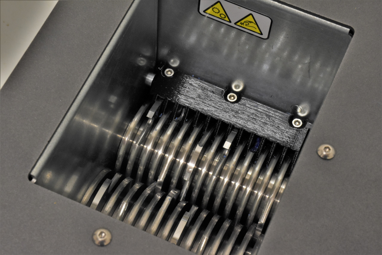 Integrated grinder (CNC‑machined steel, high‑torque gearing) lets you process 3D-print scraps directly — no external shredder needed.