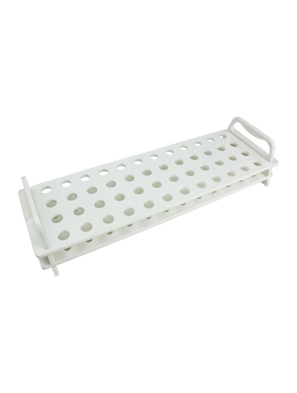 Pack of 8 stackable white polycarbonate racks, each designed to hold microcentrifuge tubes 1.5ml and 2.0ml in capacity. Each rack features 48 places in a 12 x 4 array. Molded alphanumeric coding allows for quick identification of samples. Can withstand temperatures from -135°C to 135°C. Autoclavable.